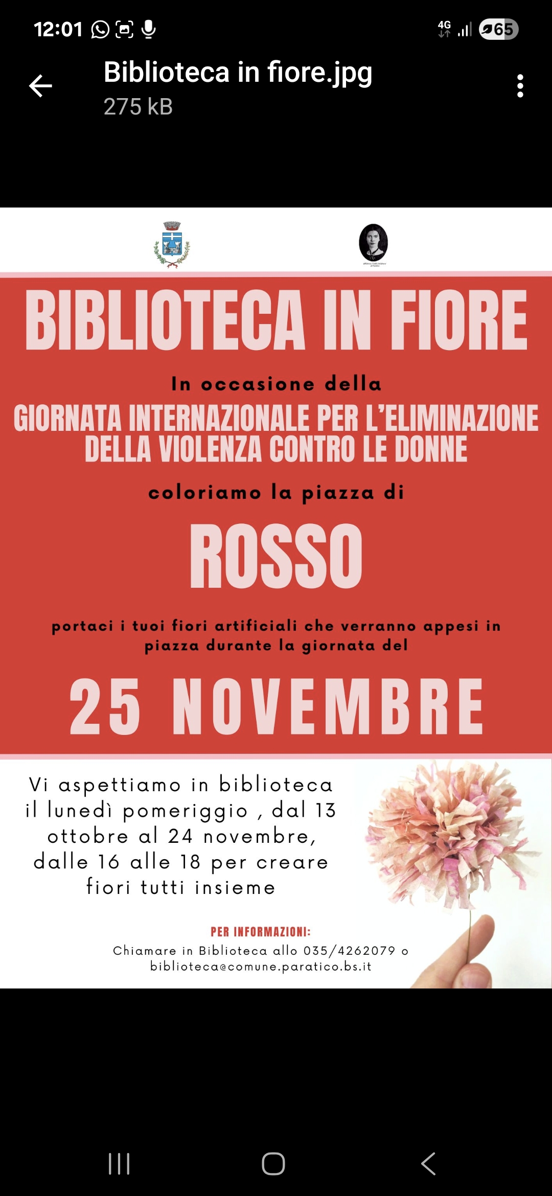 Vi apettiamo in biblioteca il lunedì pomeriggio, dal 13 ottobre al 24 novembre, dalle 16:00 alle 18:00 per creare fiori tutti insieme.