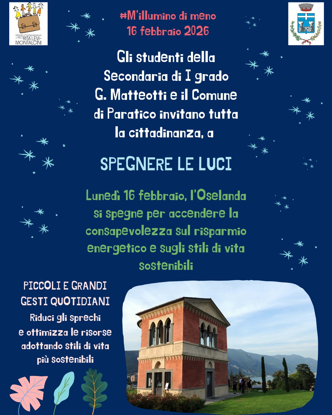 M'illumino di meno - 16 febbraio 2026 "Giornata Nazionale del Risparmio Energetico e degli Stili di Vita Sostenibili"