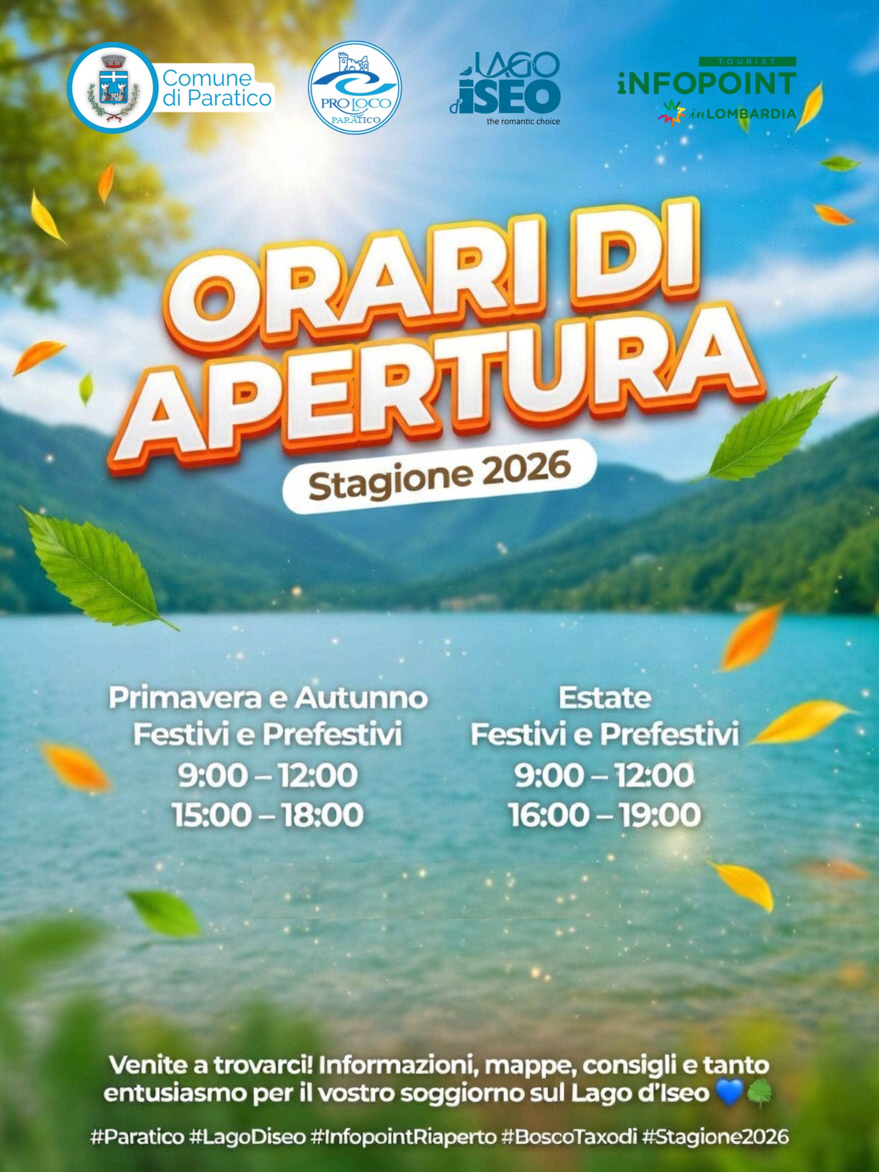 Si comunica che è nuovamente operativo l’Infopoint Paratico al Bosco Taxodi per la stagione 2026.